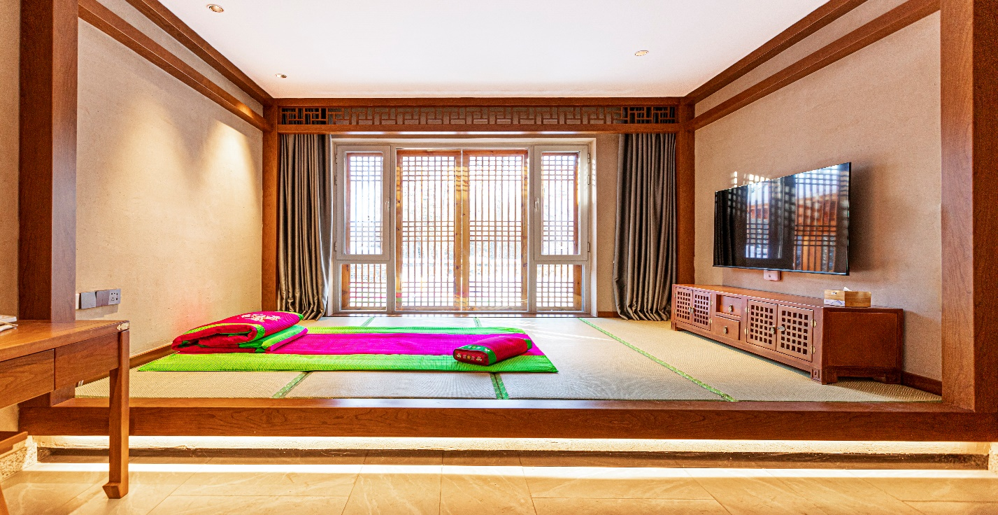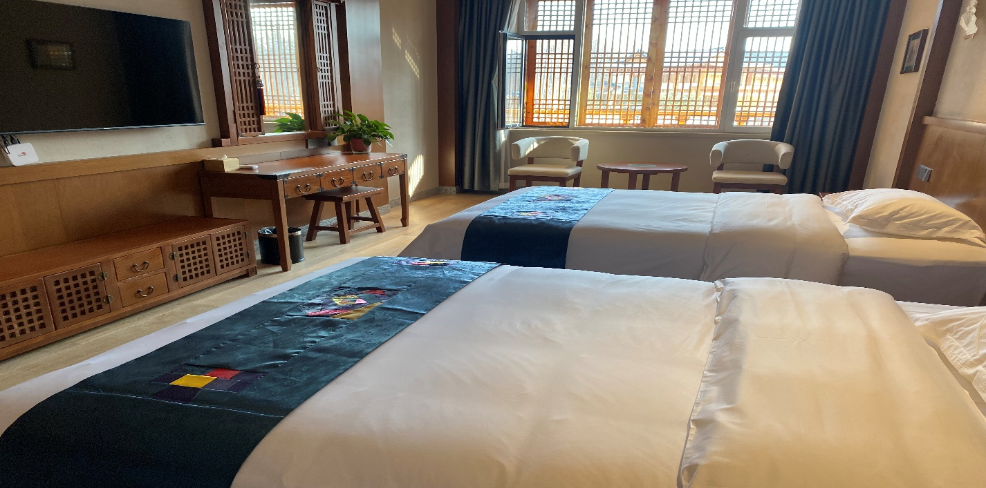 3.長(zhǎng)白山觀岳民俗酒店。計(jì)劃總投資5786.49萬(wàn)元,用地面積6979㎡,建筑面積4559.1㎡,共10個(gè)單體,長(zhǎng)白山朝鮮族民俗酒店區(qū)主要為“朝鮮族民俗民宿群”,1號(hào)建筑單體主要為接待中心及特色餐廳,餐廳以韓餐飲食為主,可容納346人同時(shí)就餐;2~10號(hào)建筑單體,客房58間,主要以朝鮮族民宿建筑物多用青灰色陶瓦屋頂。屋內(nèi)設(shè)朝鮮族榻榻米電熱炕,即使是嚴(yán)冬,室內(nèi)也溫暖如春。